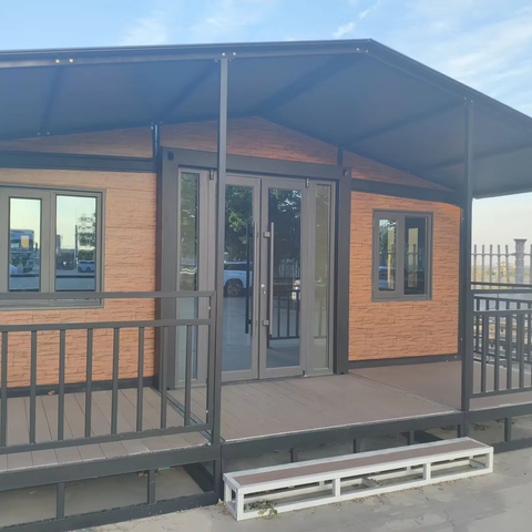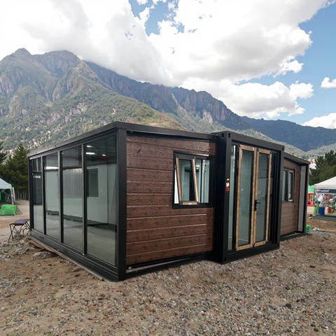 Grande Folding Fertighaus mit Glastür und Holz farbe Tragbare faltbare Mobil haus häuser zum Leben bereit